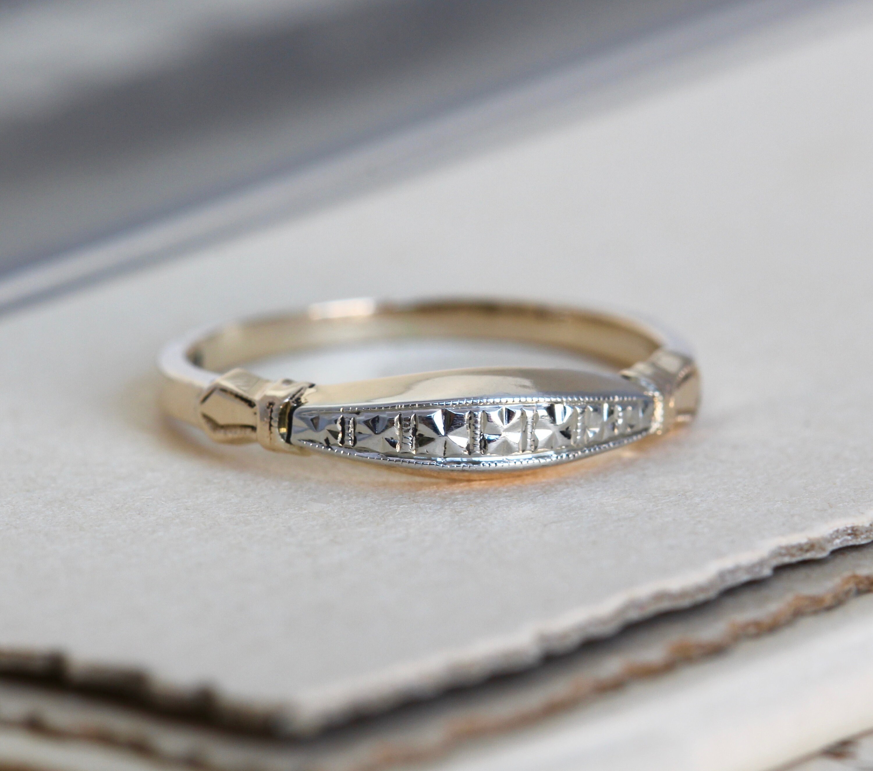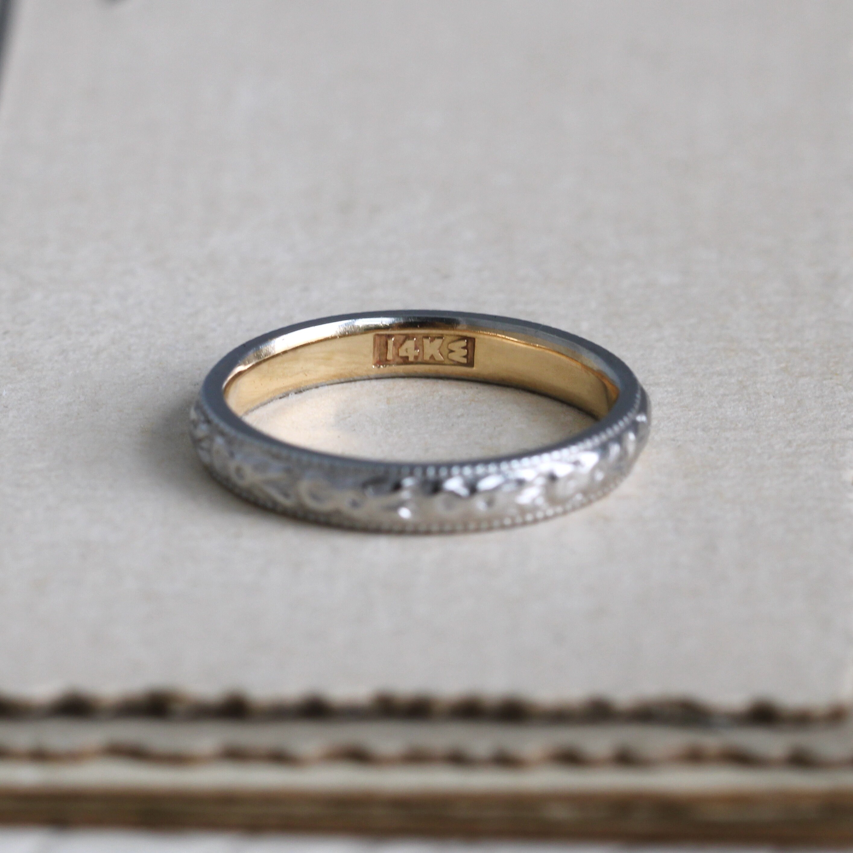 Art Deco Two Tone Gold Wedding Band Vintage 14k Carved Orange Etsy